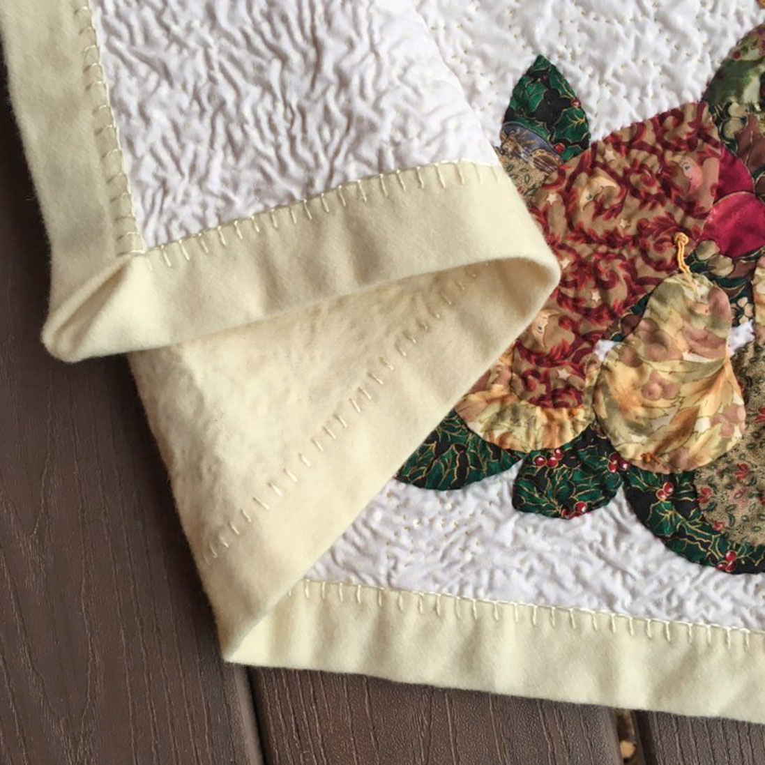 What a magnificent family heirloom indeed! All I can think is how this piece must look through the eyes of the children in your family, including the children yet to come. The applique and hand stitching are like the magical images in a children’s book, bringing the story in the song alive and setting little imaginations on fire. It’s wonderful. Merry Christmas and happy new year!