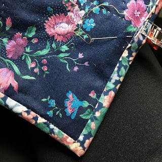 I didn't know if I'd have enough but I was already resolved to mix two, maybe three, bindings because of all of the blues used in the quilt so I was good with however much it gave me. No need to worry. There was enough for the entire quilt and still a little left over!So it's clipped and the hand stitching has begun...M